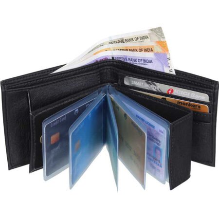 Men Formal, Casual Black Artificial Leather Wallet (8 Card Slots)