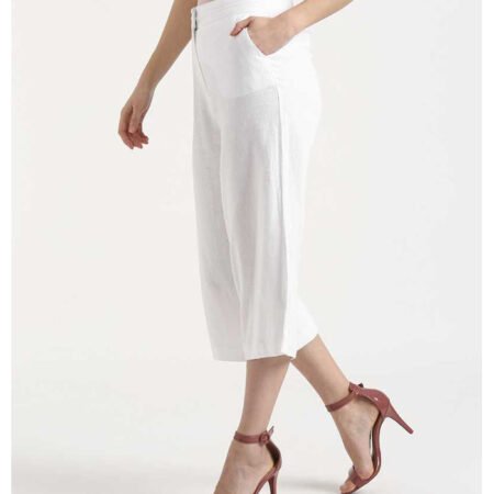 Relaxed Women White Cotton Linen Blend Trousers
