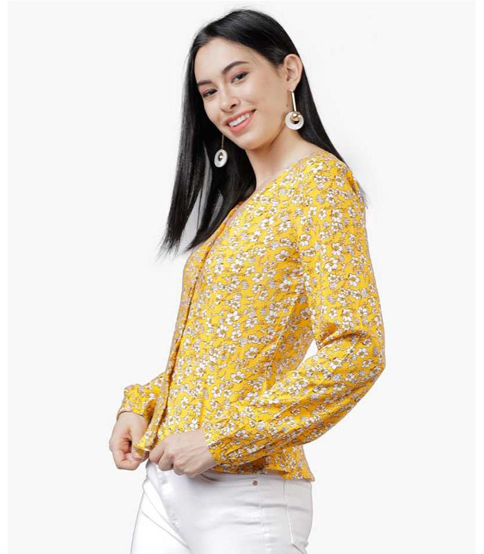 Casual Full Sleeve Printed Women Yellow Top