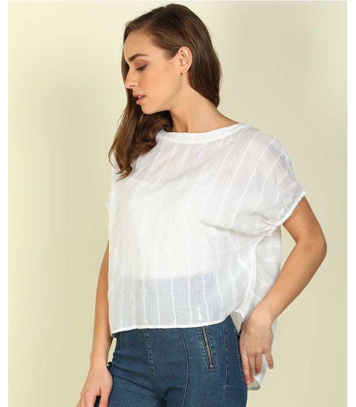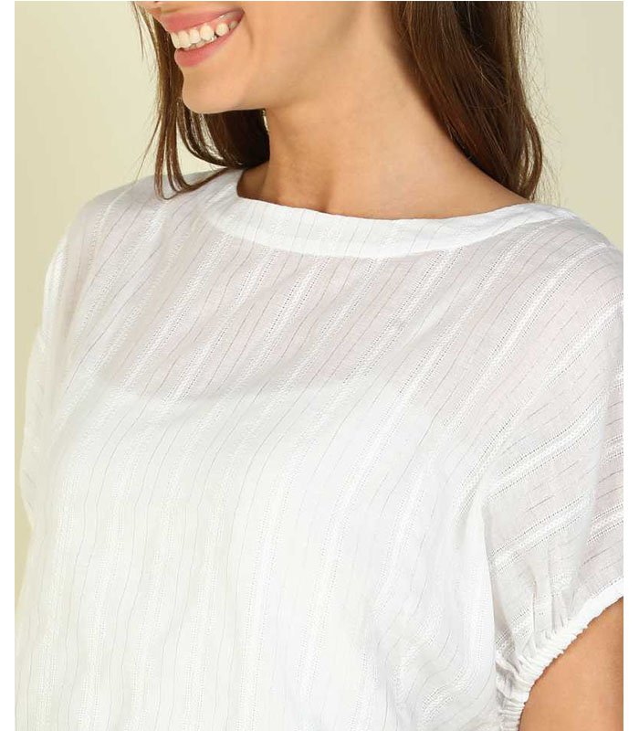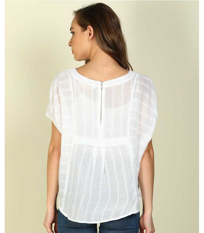 FM Casual Batwing Sleeve Striped Women White Top