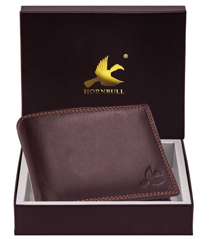 Men Casual Brown Genuine Leather Wallet (7 Card Slots)