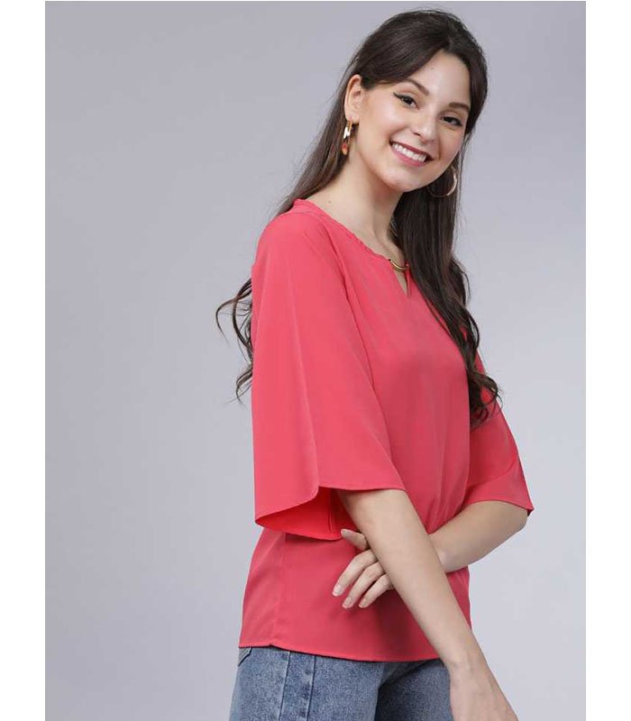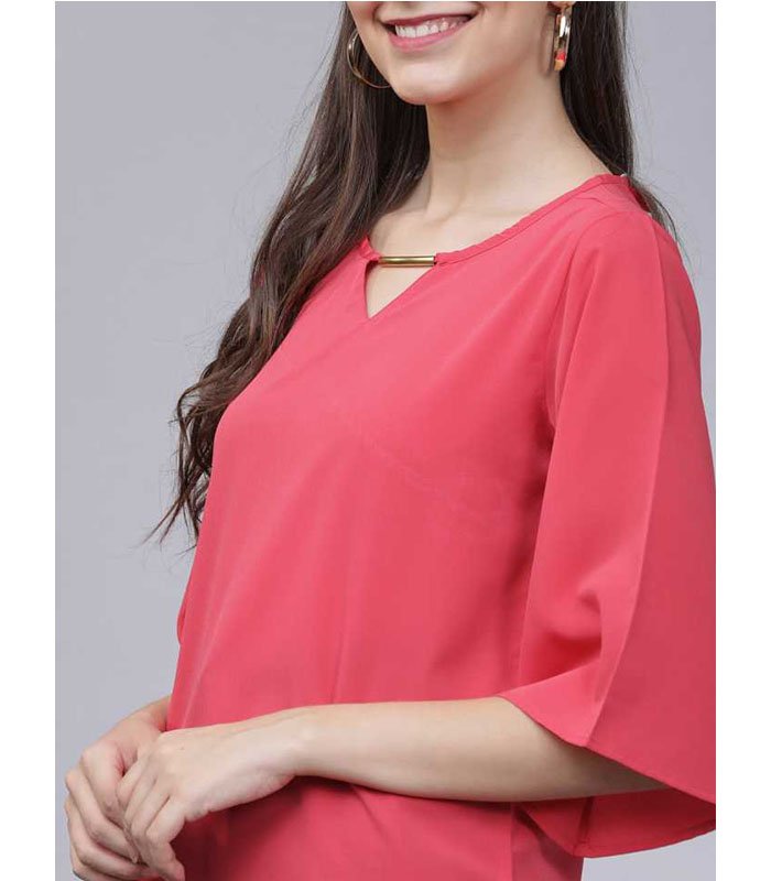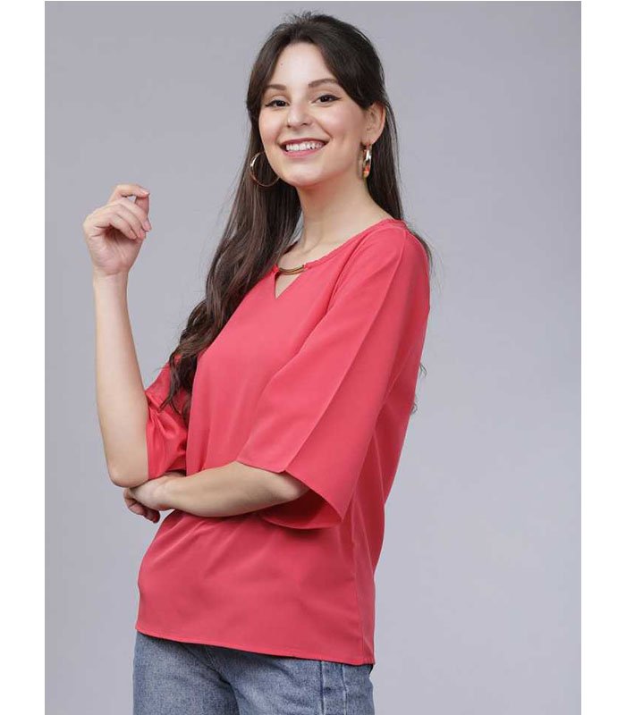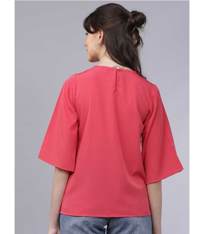 TT Casual 3/4 Sleeve Solid Women Pink Top